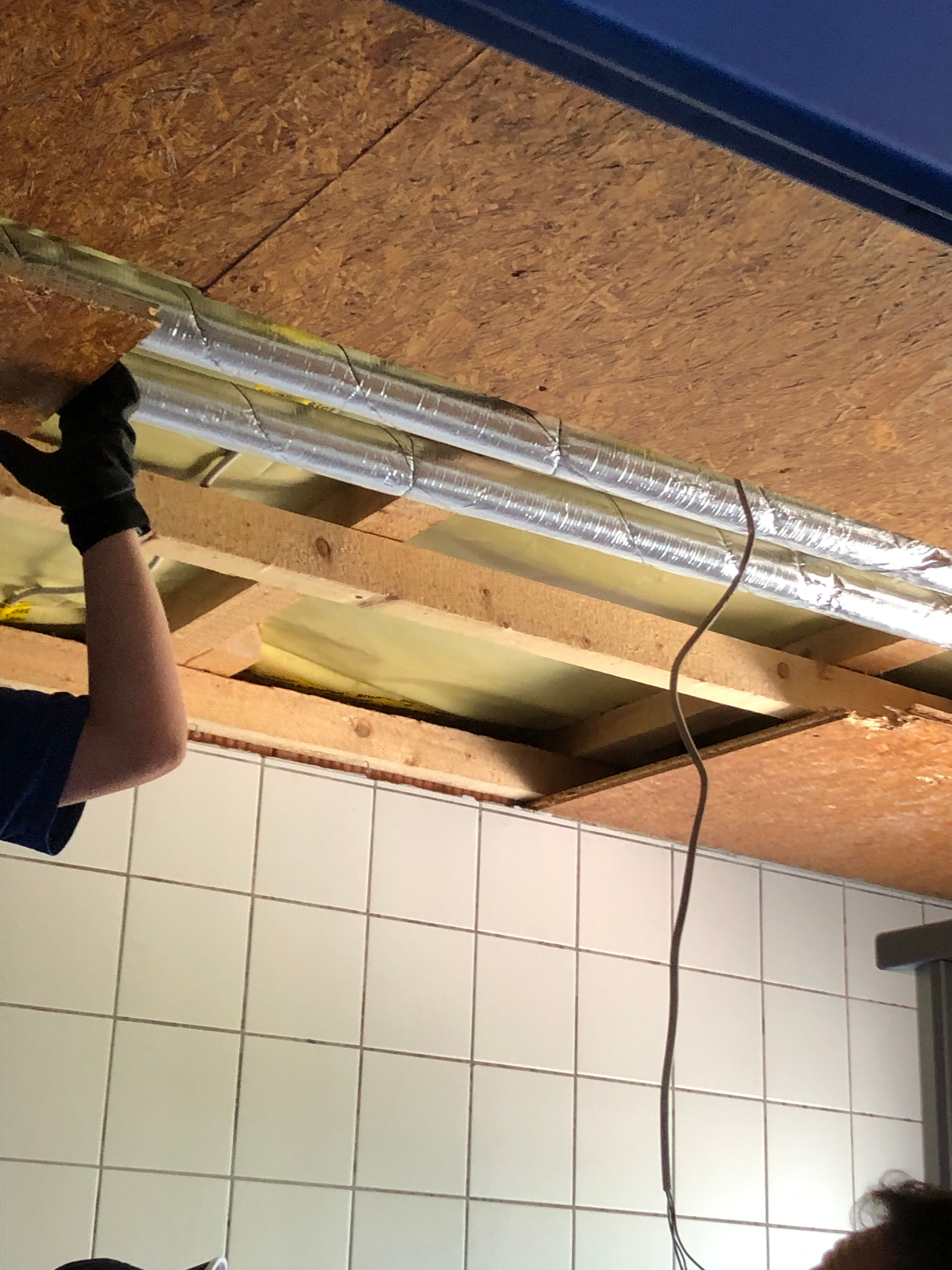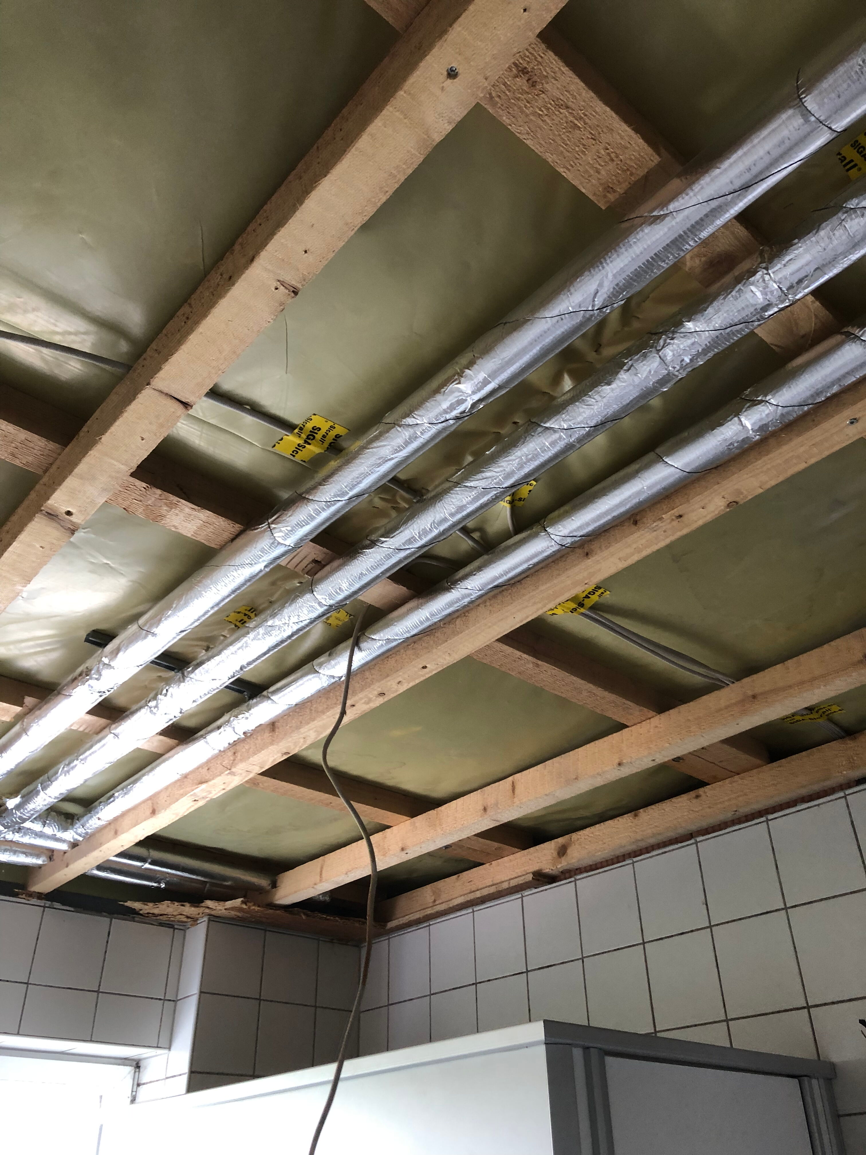 Neben den Außenanlagen wurde auch der Rückbau der Decken im Umkleideraum durchgeführt und somit der Start der Sanierungsmaßnahmen des vereinseigenen Kabinentrakts eingeleitet. Im Rahmen der Sanierung werden die Decken in den Duschräumen erneuert und der komplette Kabinentrakt mit einer neuen Zu- und Abluftanalge mit Wärmerückgewinnung ausgestattet.
