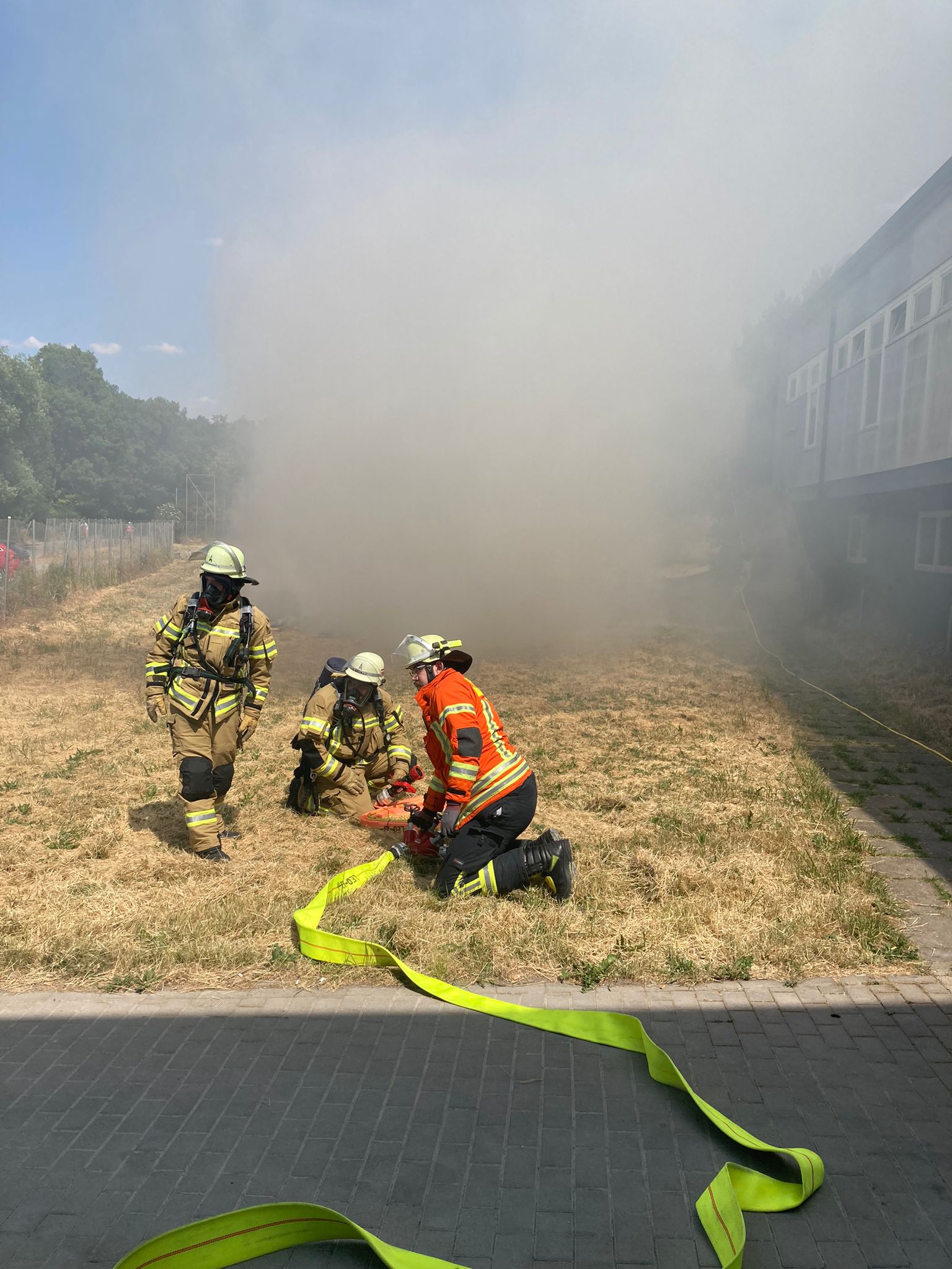 Kurz vor 16:00 Uhr kam es noch zu einem überraschenden Abschluss des Arbeitseinsatzes. - Die freiwillige Feuerwehr musste anrücken und einen Flächenbrand auf der unteren Wiese (Brandursache unbekannt) löschen. - Auch der FW ein Dankeschön für den Einsatz und das Verhindern von Schlimmerem!